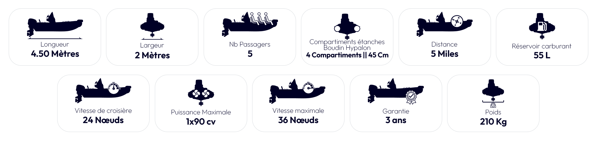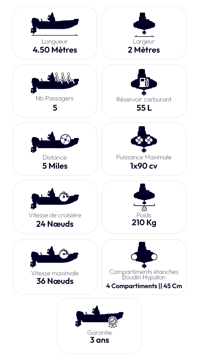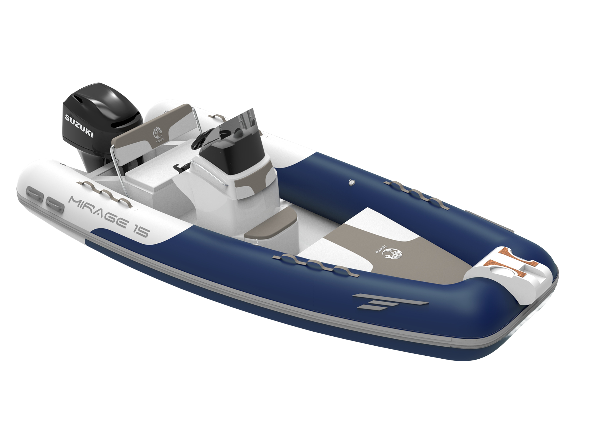 Avec ses 4,5 mètres de longueur, le MIRAGE 15 bouscule les codes établis et redéfinit l’idée même du semi-rigide compact. Petit par la taille mais ambitieux par l’expérience qu’il propose, il concentre agilité, simplicité et plaisir pur, dans un format pensé pour une navigation libre et immédiate.